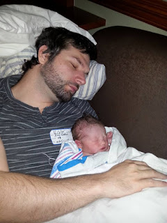 First pic with daddy. We waited to have her weighed and measured until the wee hours of the morning since she fell asleep in Alex's arms. They had a pretty immediate bond, which was an answered prayer of mine!